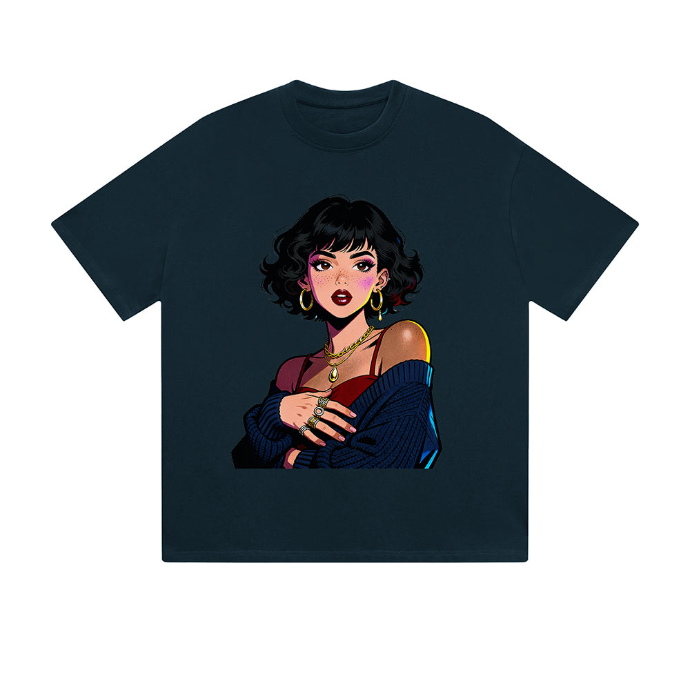 Solid Color T-Shirt Fashion Woman Portrait Jewelry Art Graphic Print Casual Daily Streetwear Feel lives