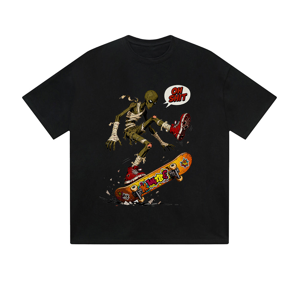 Increase Quantity for Solid Color T-Shirt Oh Shit Zombie Skateboard Funny Cartoon Graphic Print Casual Daily Streetwear Feel lives